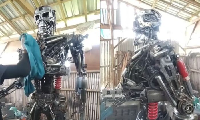 Penduduk Desa Harjawinangun, Kecamatan Balapulang, Kabupaten Tegal di Jawa Tengah tersebut mengubah suku cadang mobil lama menjadi robot raksasa yang mempesona.